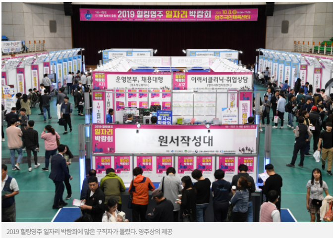 경북 영주상공회의소(회장 조관섭)는 8일 영주국민체육센터에서 '2019 힐링영주 일자리 박람회'를 개최했다.